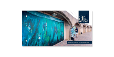 Available now! Art in the Arches includes a set of eight stamps, a souvenir sheetlet and postcard set. The issue features artwork of the murals...
