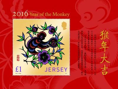 In 2016, Jersey Post issued the Year of the Monkey stamp and miniature sheet. Within the stamp and miniature sheet, the monkey can be seen picking peaches. In Chinese culture, peaches are seen as a sign of long life, while the monkey can signify flexibility and intelligence.