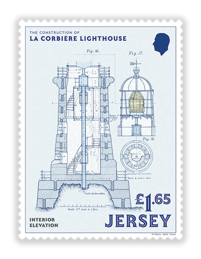 The stamp artwork is by Norwegian engraving artist Martin Mörck, whose powerful illustrations are inspired by the original working engineers drawings of the lighthouse. La Corbiere’s lighting was a huge achievement for the Island as the rocky waters around La Corbière were often the roughest part of their journey. The guiding light provided safety and assured sailors that they were entering the final straight towards the harbour of St Helier, better said with the Jèrriais phrase, ‘…j'avons pâssé La Corbiéthe!’ translated as ‘we've passed La Corbière,’ the worst is over.