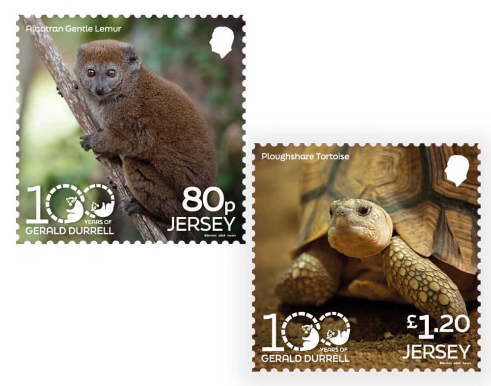 The 100 Years of Gerald Durrell: Conservation pocket money set includes the two lowest values within the eight stamp issue. Images courtesy of the Durrell Wildlife Trust.