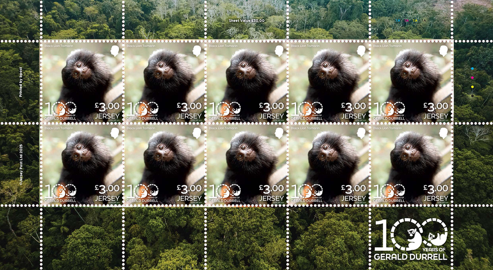 A Sheet of 10 Stamps from our '100 Years of Gerald Durrell: Conservation' issue.