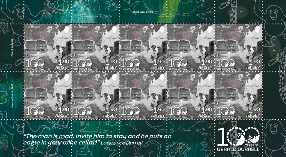Following on from the stamp set issued in January this year 100 Years of Gerald Durrell: Conservation, this set focuses more on the person behind the legacy. To gain an understanding of who Gerald was, the Jersey Post Philatelic team met up with Gerald Durrell’s widow, Lee Durrell and Archivist Catherine Kirby who were incredibly helpful in providing insight into Gerald Durrell.