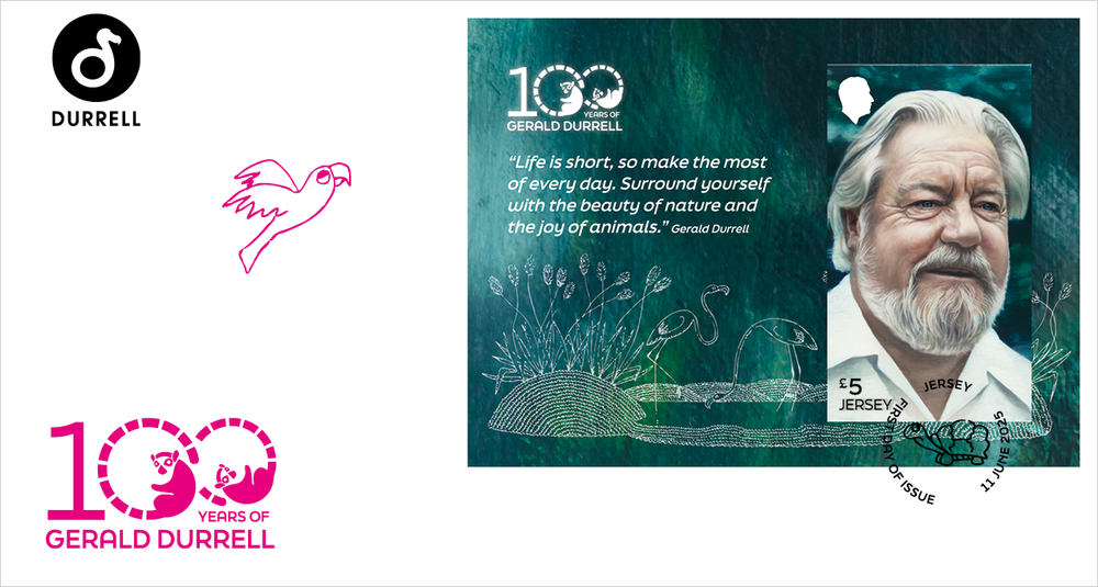The miniature sheet portrait was painted by well-known local artist, Jason Butler. To ensure the person behind the legacy was captured within the portrait, Jason visited Gerald’s apartment which holds an array of treasured objects and books that reflect Gerald’s interests. He also met with Lee Durrell, to find out more about how Gerald liked to entertain guests, getting a better understanding of the lesser talked about and more casual side of the conservationist. Despite Gerald Durrell’s passing in 1995, he remains a much beloved legend in Jersey.