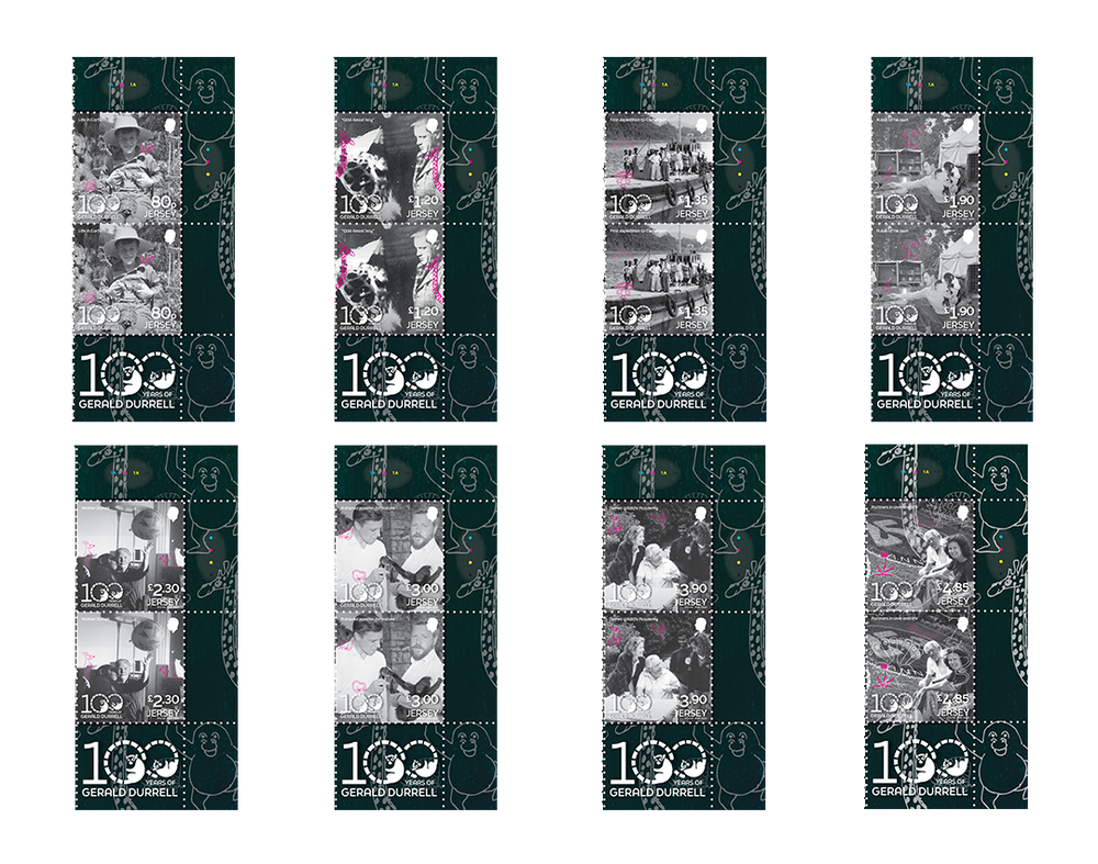 Following on from the stamp set issued in January this year 100 Years of Gerald Durrell: Conservation, this set focuses more on the person behind the legacy. To gain an understanding of who Gerald was, the Jersey Post Philatelic team met up with Gerald Durrell’s widow, Lee Durrell and Archivist Catherine Kirby who were incredibly helpful in providing insight into Gerald Durrell.