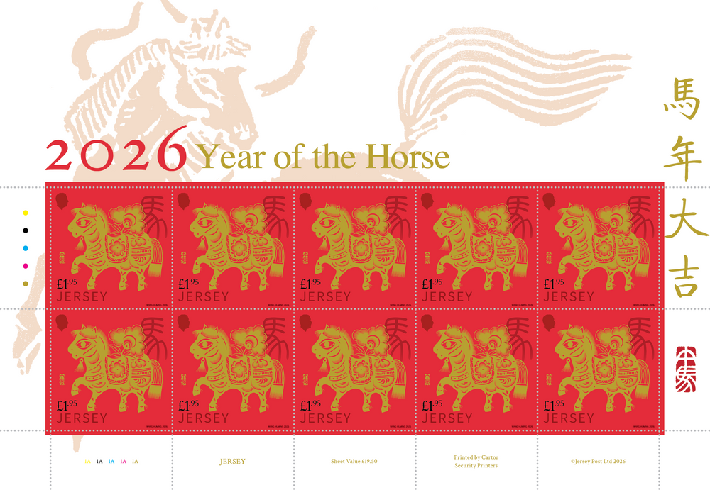 Since 2016, Jersey Post has celebrated the international celebration of Chinese New Year. By taking inspiration from original Chinese paper cutting and popular artwork from the Qing dynasty, the artist has created a unique design to celebrate this year’s fire horse.