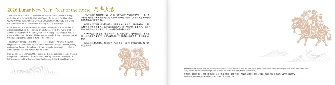 This Presentation Pack displays stamp from our '2026 Lunar New Year - Year of the Horse' issue.