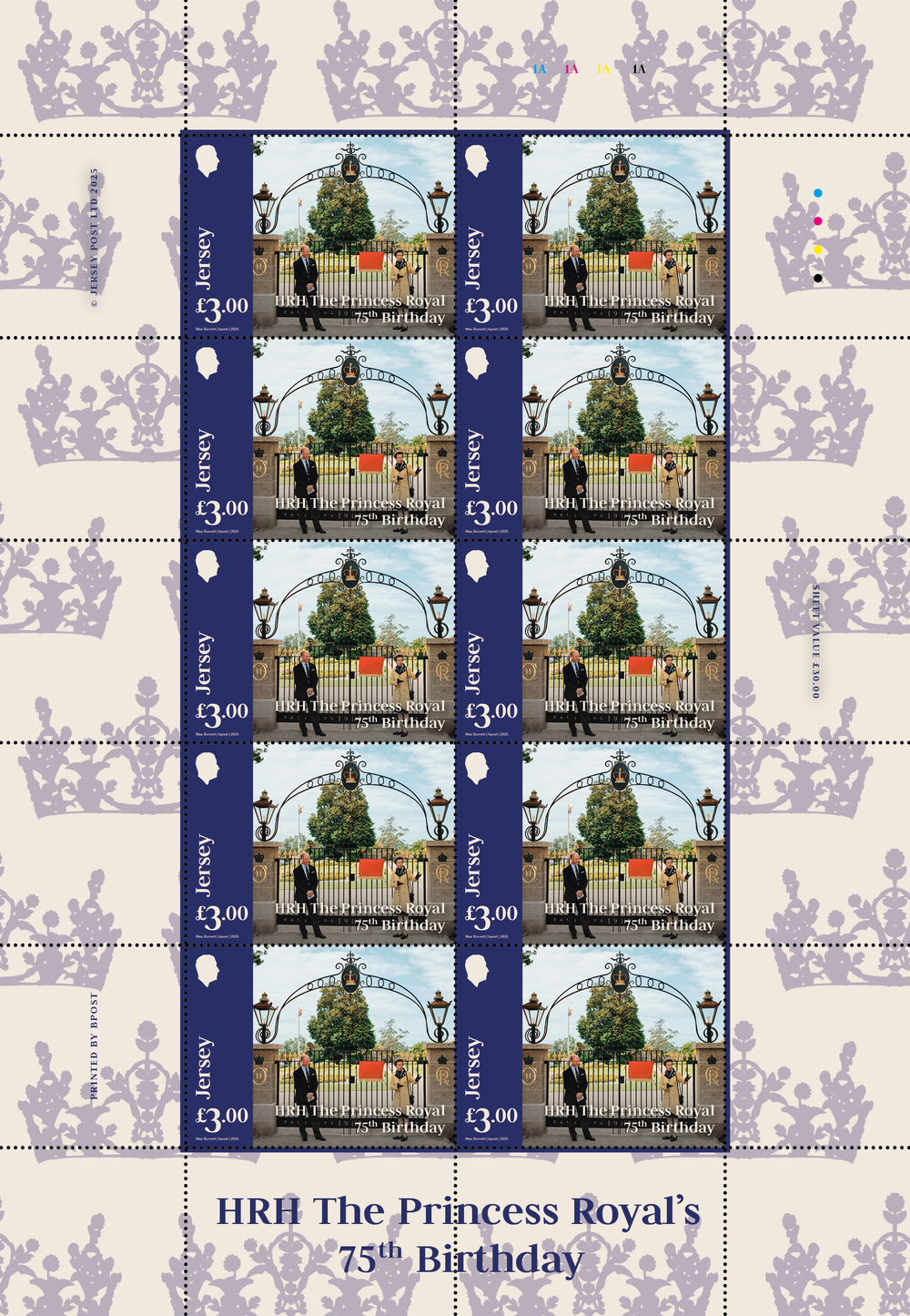 The Jersey Post stamp issue HRH The Princess Royal’s 75th Birthday celebrates 75 years of Princess Anne and her dedication to the public. The second child and only daughter of Queen Elizabeth II and Prince Philip, the Princess Royal is King Charles II only sister and the seventh monarch to hold the title of Princess Royal.
