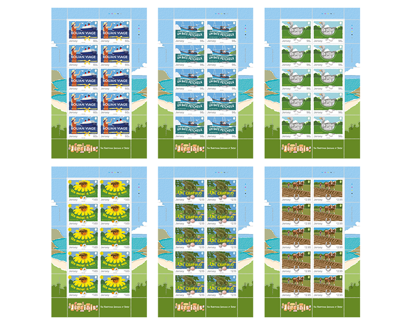 A Sheet of 10 Stamps from our 'Jèrriais 2' issue.