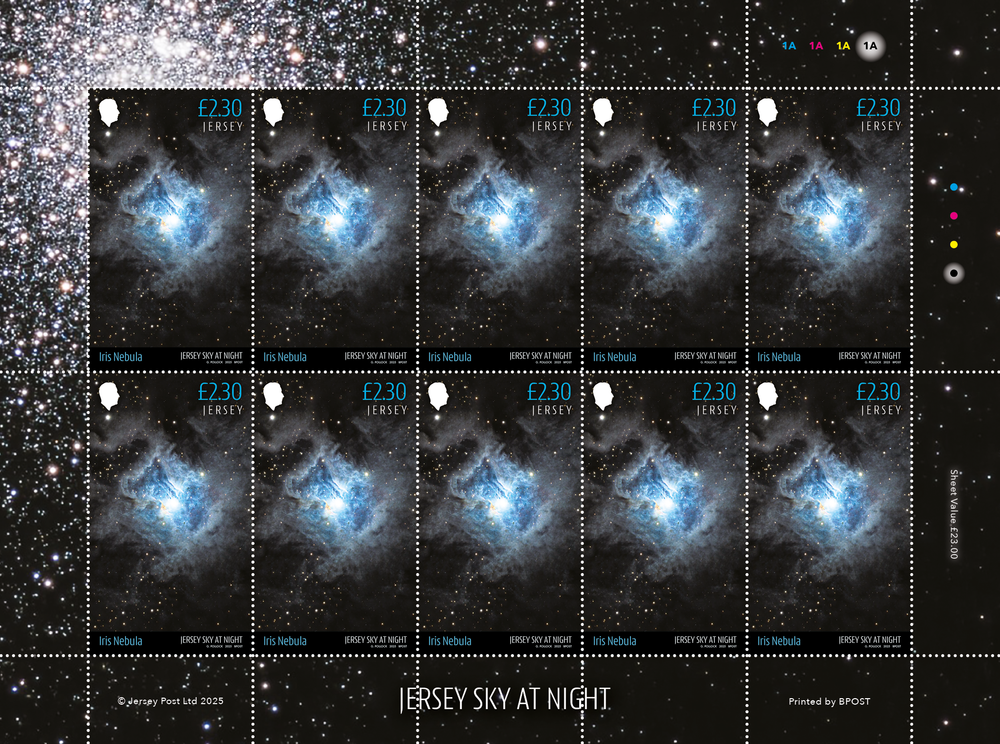 A Sheet of 10 Stamps from 'Jersey Sky at Night' issue. Images captured by local Jersey astronomy photographers Neil Maher and Gordon Pollock.
