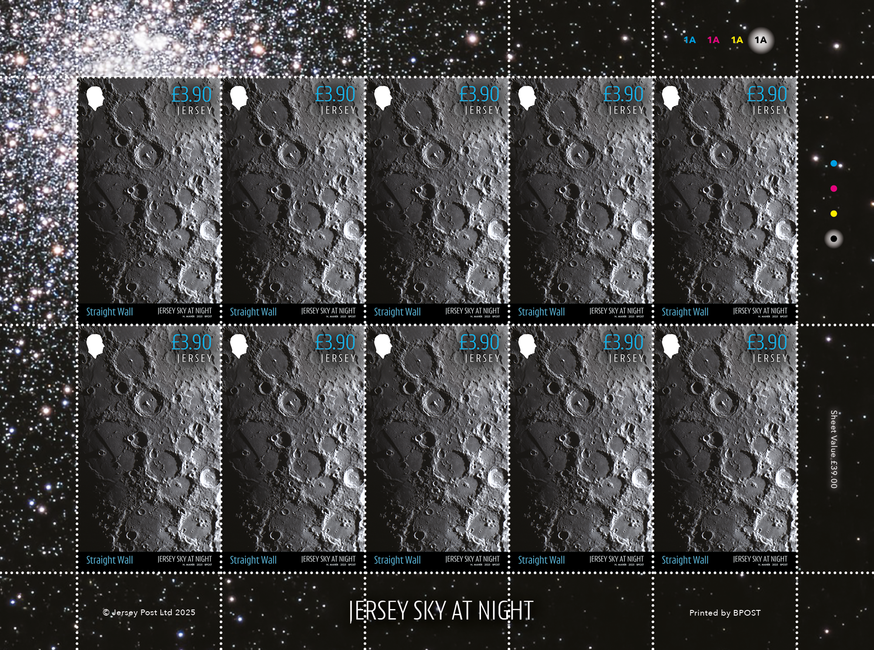 A Sheet of 10 Stamps from 'Jersey Sky at Night' issue. Images captured by local Jersey astronomy photographers Neil Maher and Gordon Pollock.
