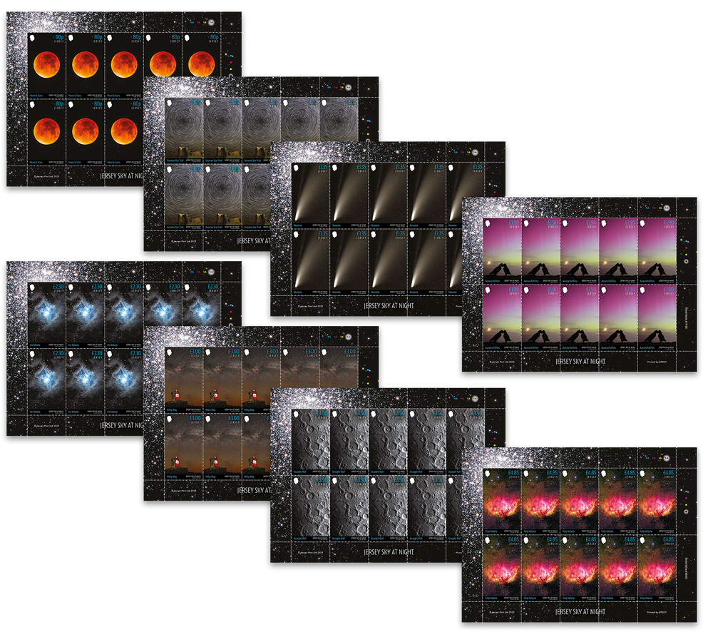 The complete sheet set from 'Jersey Sky at Night' issue. Images captured by local Jersey astronomy photographers Neil Maher and Gordon Pollock.