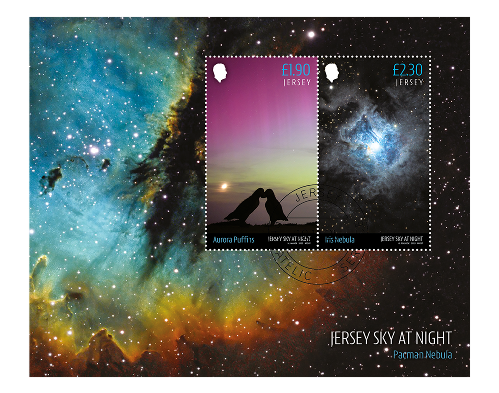 The souvenir miniature sheet from our 'Jersey Sky at Night' issue. Images captured by local Jersey astronomy photographers Neil Maher and Gordon Pollock.