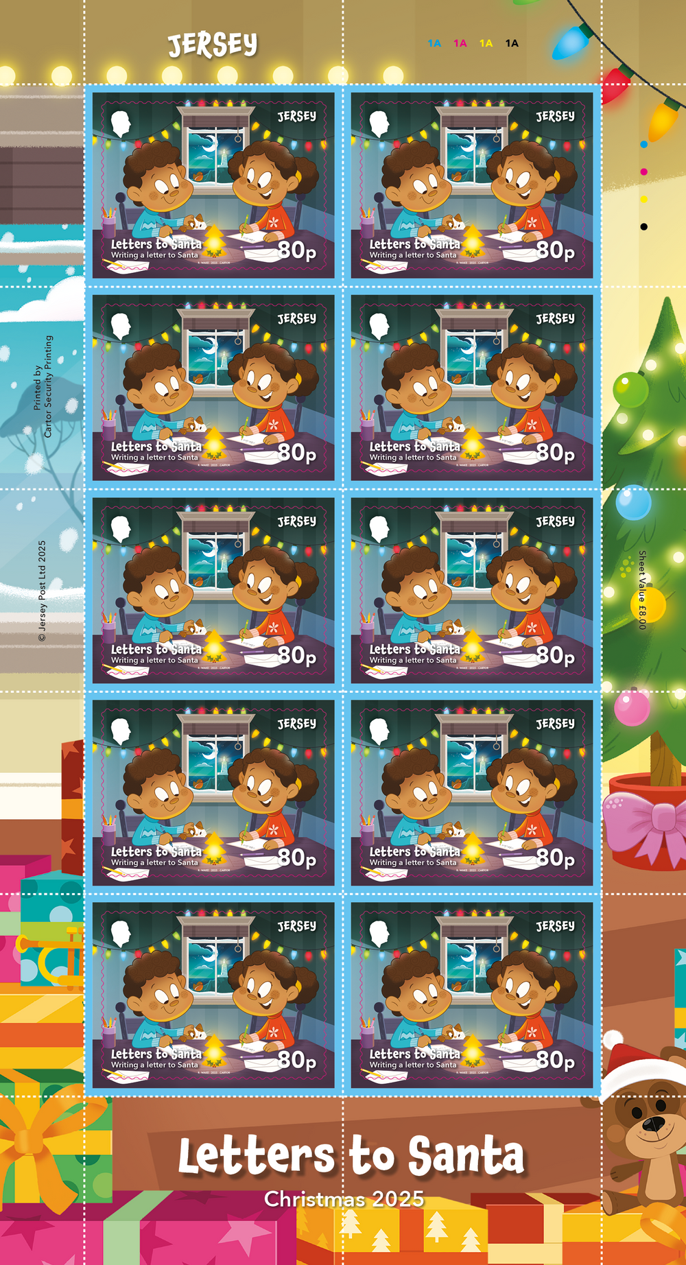 A Sheet of 10 Stamps from 'Letters to Santa' issue. Illustrated by Richard Wake.