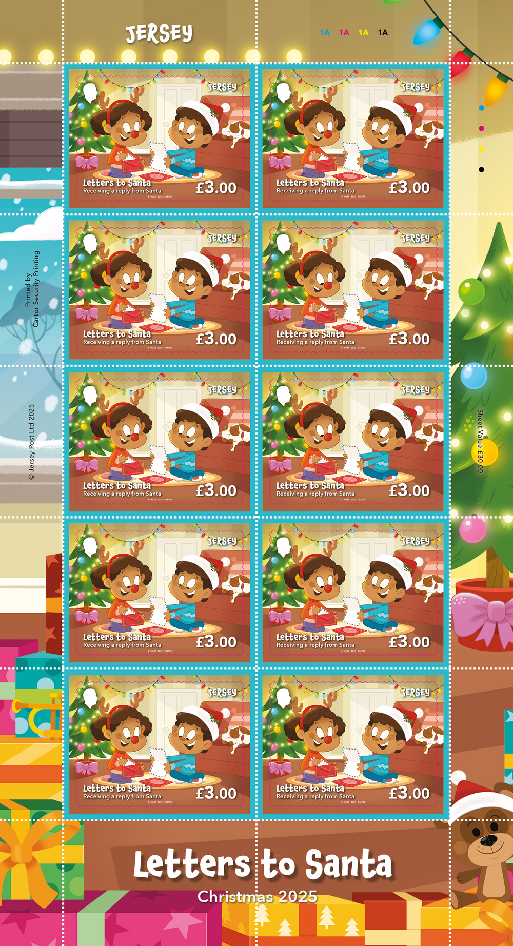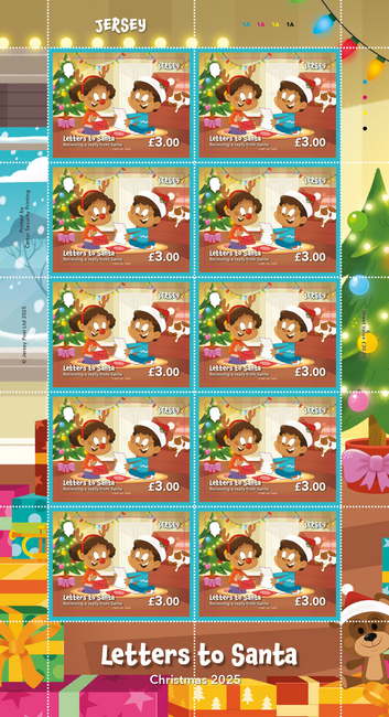 A Sheet of 10 Stamps from 'Letters to Santa' issue. Illustrated by Richard Wake.
