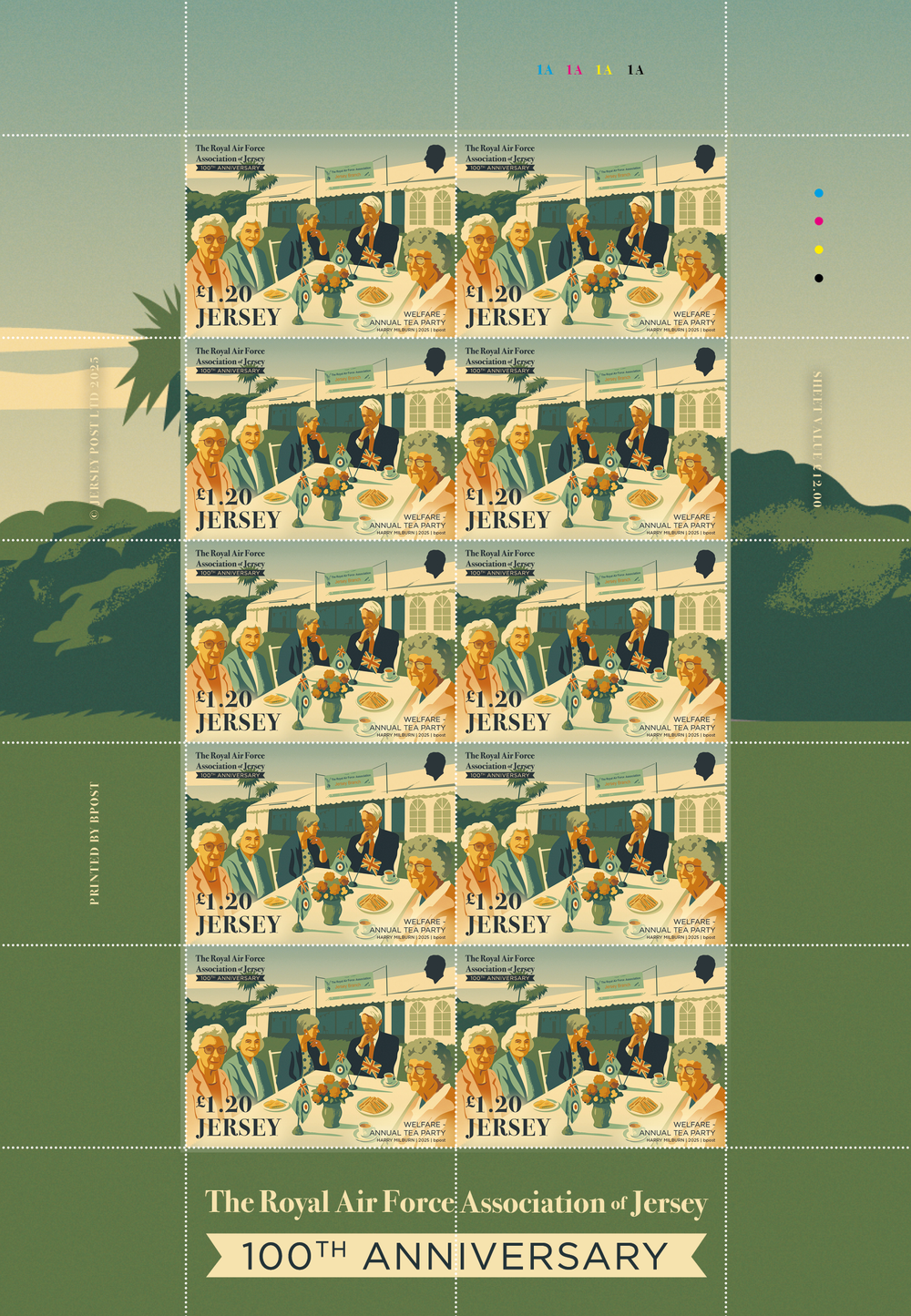 A Sheet of 10 Stamps from 'Royal Air Force Association of Jersey - 100th Anniversary' issue. Illustrated by Harry Milburn.