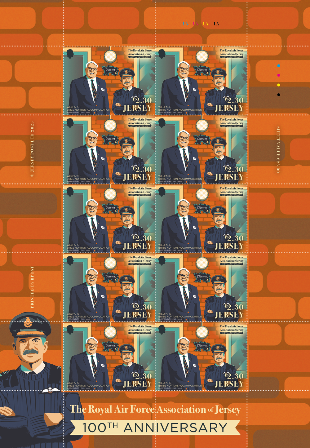 A Sheet of 10 Stamps from 'Royal Air Force Association of Jersey - 100th Anniversary' issue. Illustrated by Harry Milburn.