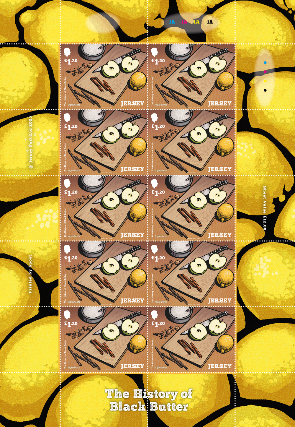 A Sheet of 10 Stamps from 'The History of Black Butter' issue. Illustrated by Chris Wormell.