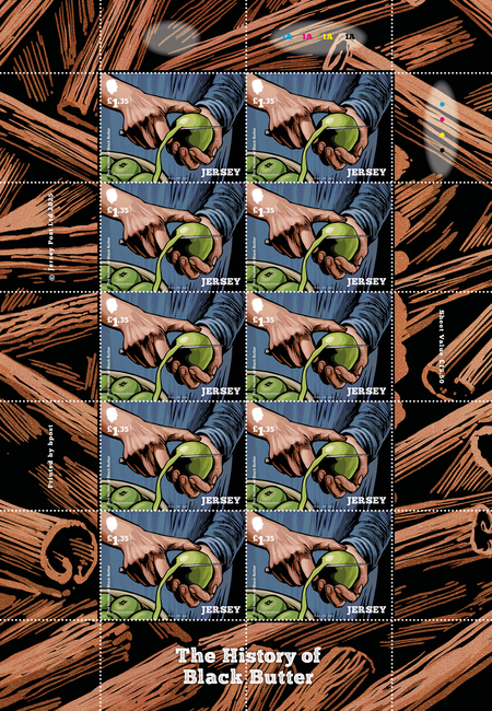 A Sheet of 10 Stamps from 'The History of Black Butter' issue. Illustrated by Chris Wormell.