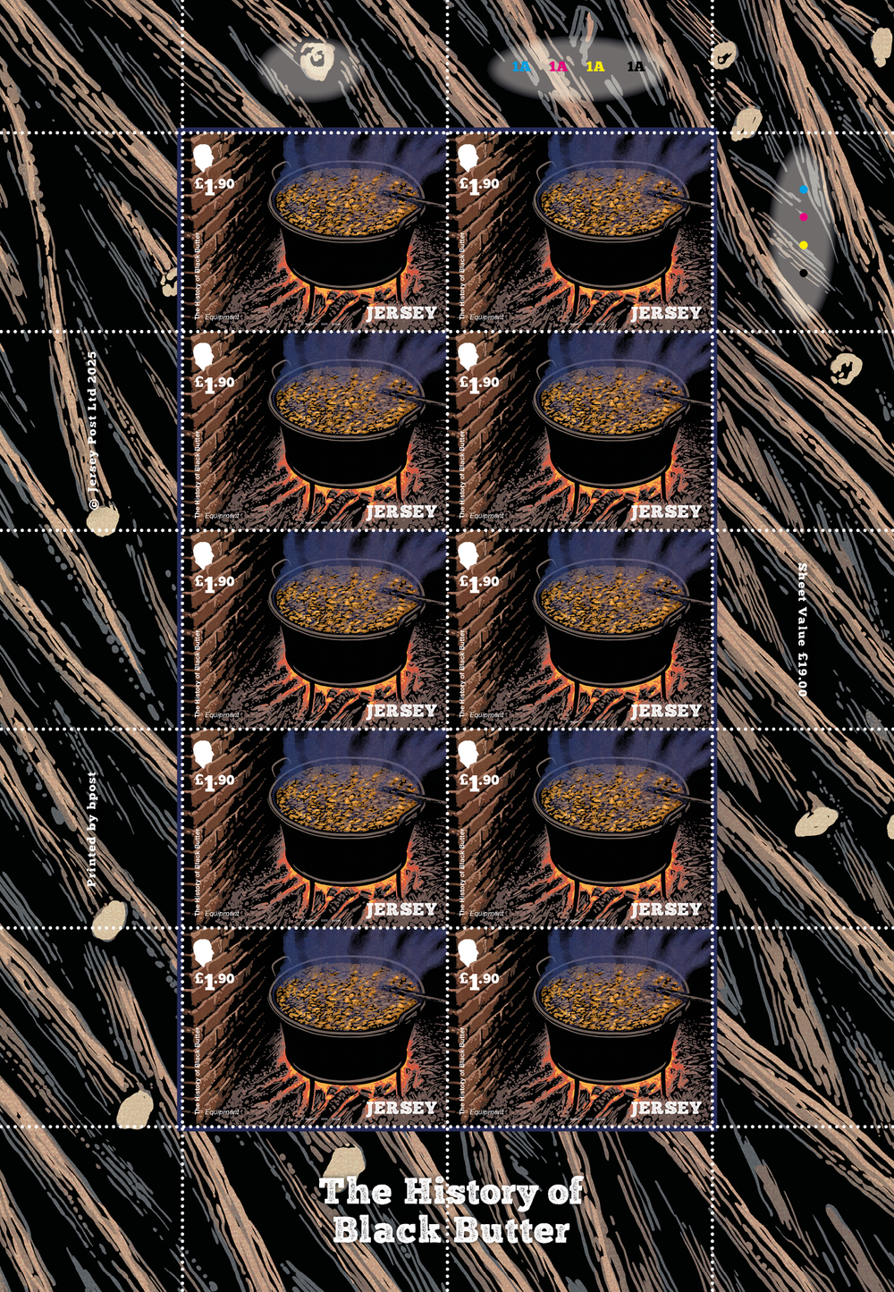 A Sheet of 10 Stamps from 'The History of Black Butter' issue. Illustrated by Chris Wormell.